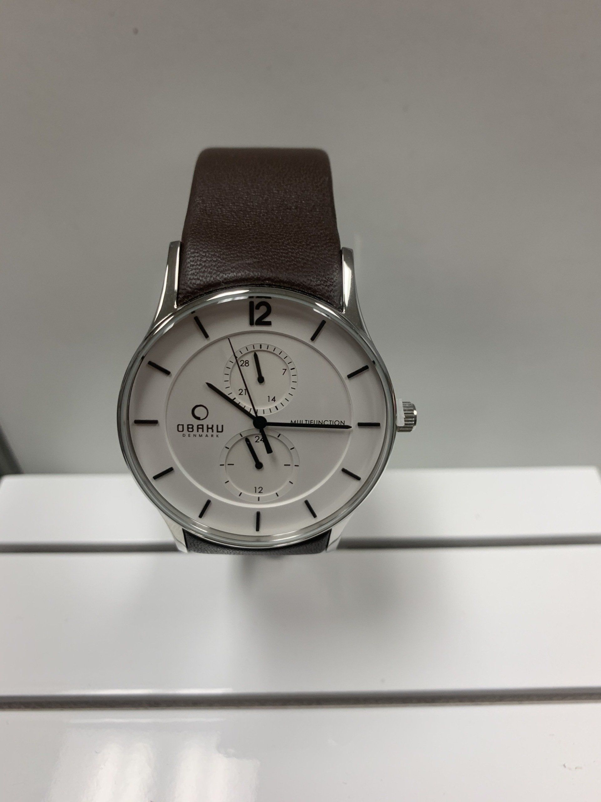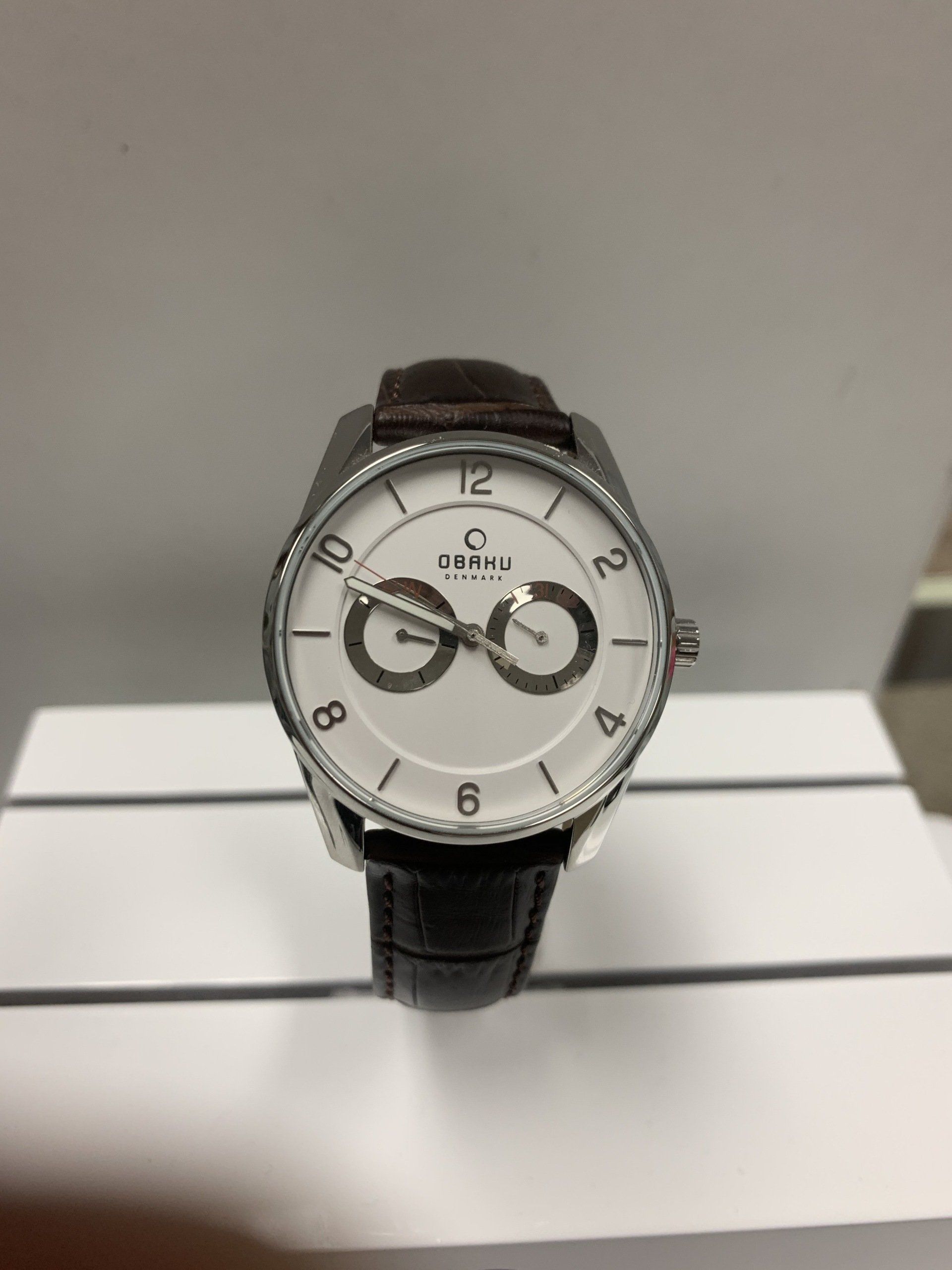 OBAKU, mens wrist watch, Quarts, Leather strap, W.R. 100 ft. Style# V171GMCIRN,
