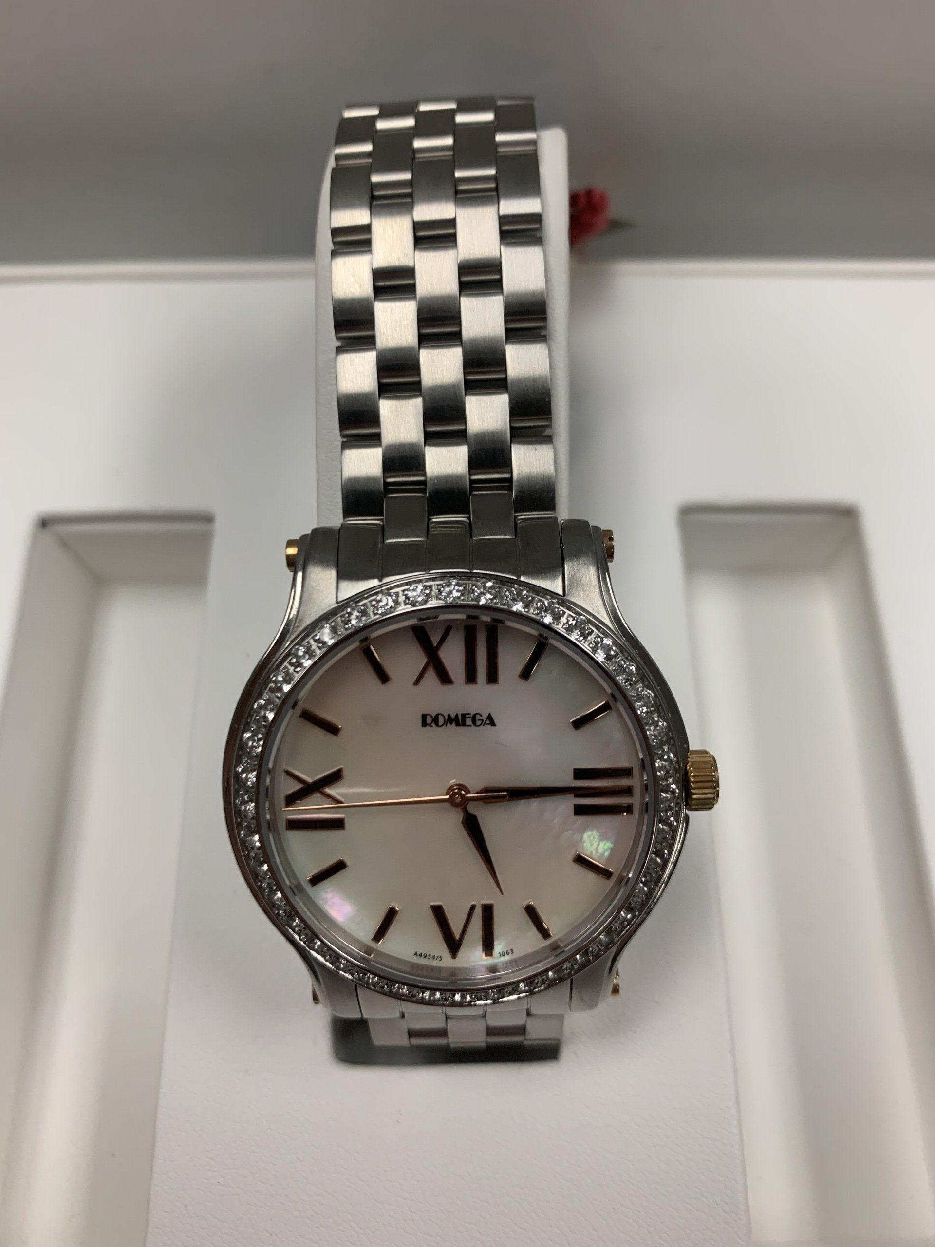 ROMEGA, Ladies wrist watch, Quatrz, Metal Bracelet W.R. 660 ft, Style # A9418WBW.