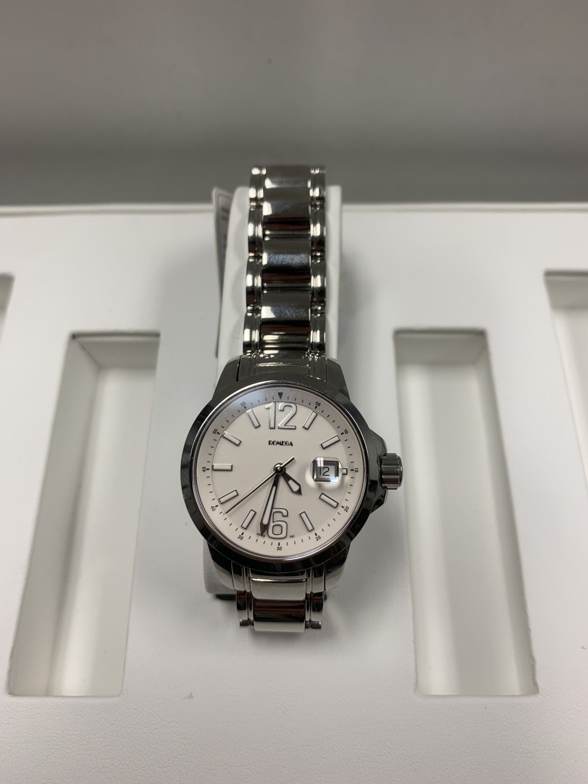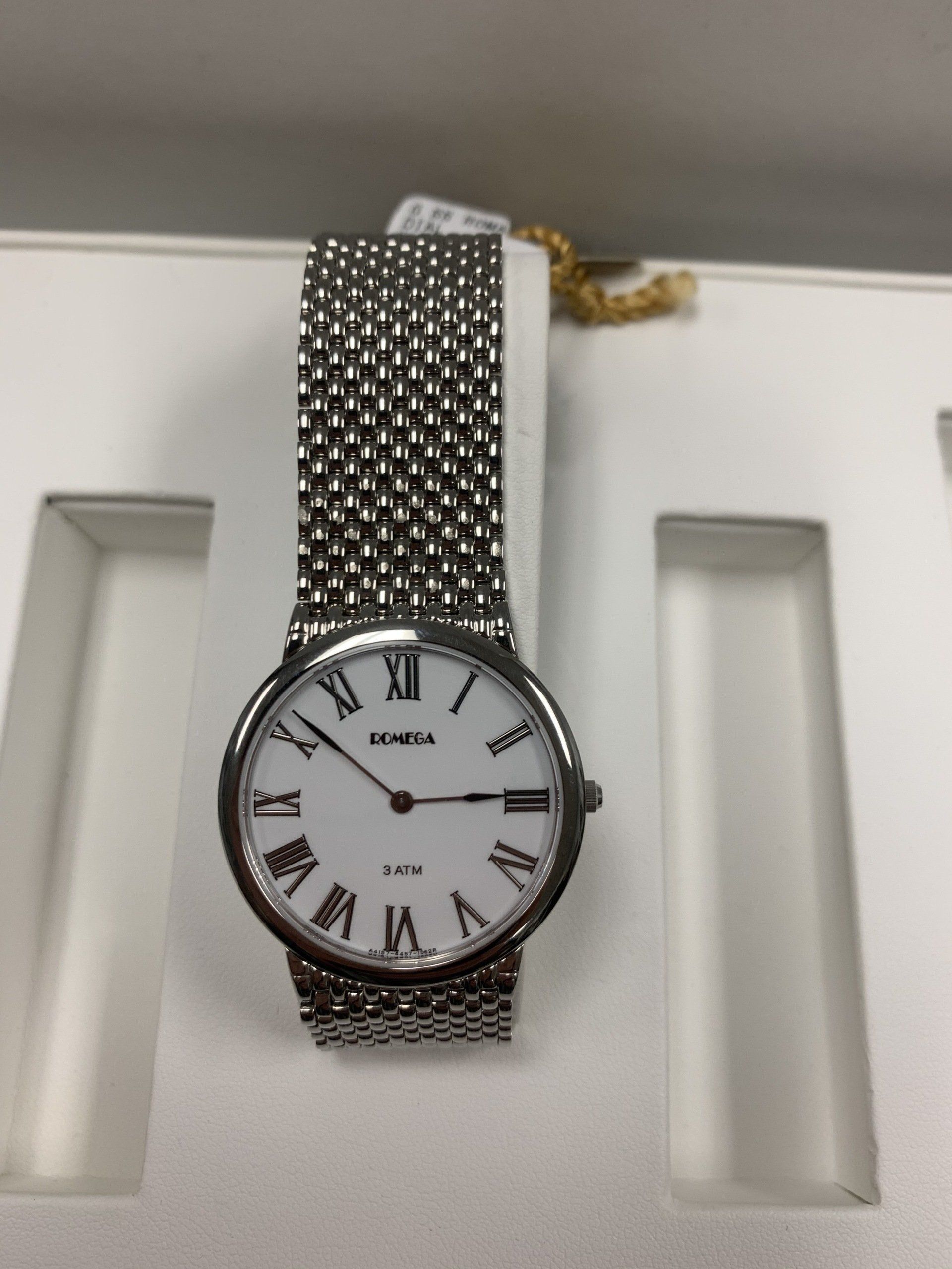 ROMEGA mens wrist, Quatrz, stainless steel mesh braclet, W.R 100 ft. Style # A4457W , New!