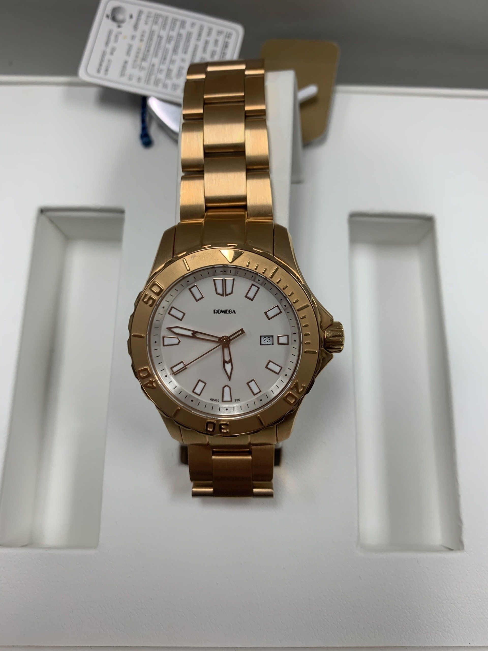ROMEGA, Mens wrist watch, Quatrz, Rubber strap, W.R. 330 ft, Style # A9360.