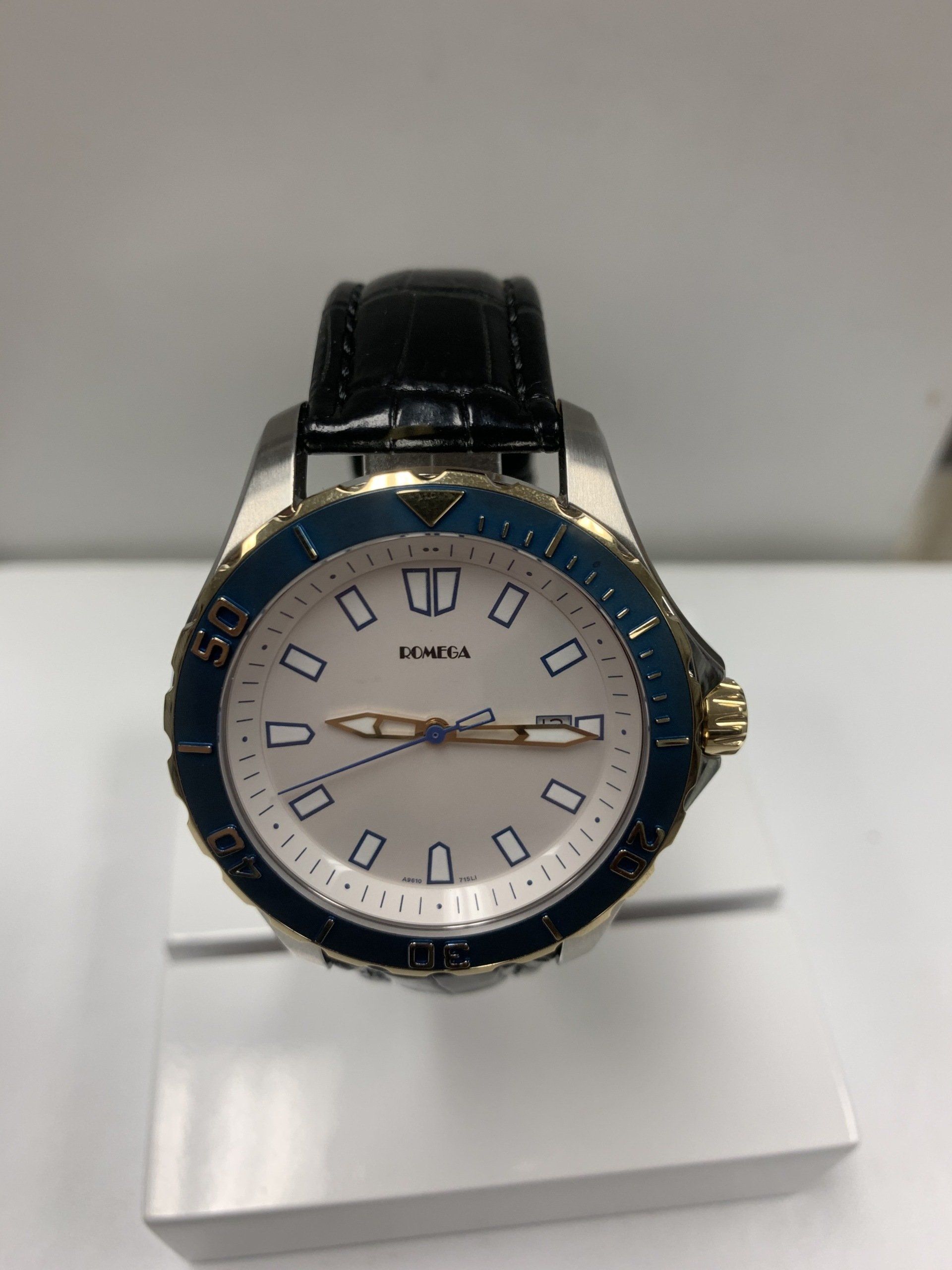 ROMEGA, Mens wrist watch, Quatrz, Leather strap, W.R. 660 ft, Style # A9610T,